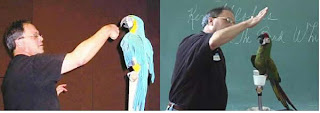 İki kişiye dayanan bu eğitimi Dr. İrene Pepperberg, dünyanın en meşhur papağanı olan Alex isimli gri papağana uygulayarak ona pek çok objenin ismini söylemeyi, altıya kadar varan objeleri saymayı, büyük-küçük ve renk ayrımını yapmayı öğretmiştir